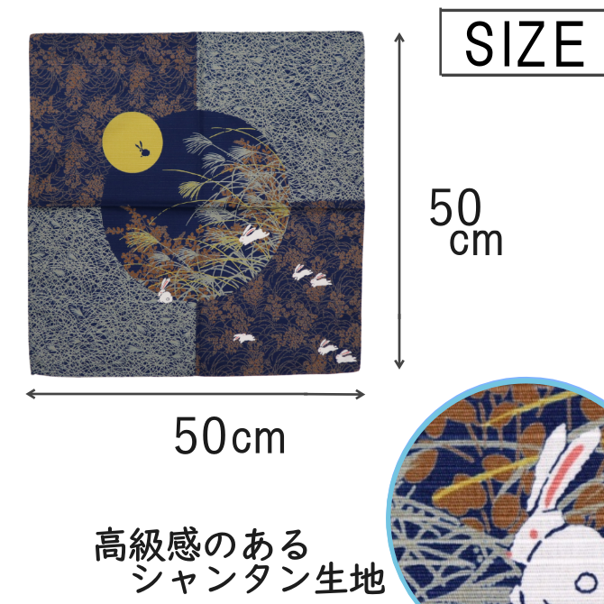 綿小ふろしき 風呂敷 「月見うさぎ」 50×50 中巾 シャンタン 綿100% 跳兎 ネイビー 紺