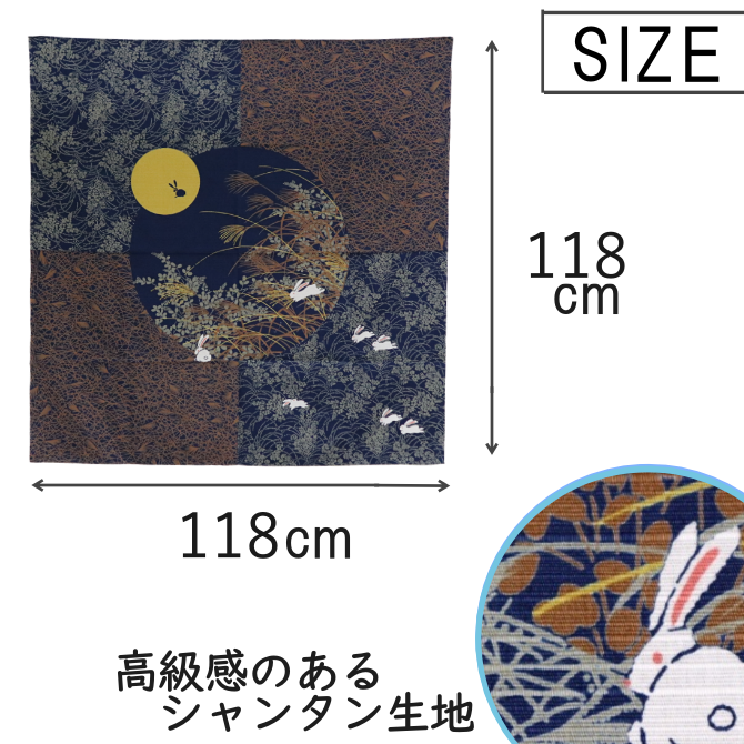 綿大ふろしき 風呂敷 「月見うさぎ」 118×118 自遊布 綿100% シャンタン 跳兎 ネイビー 紺