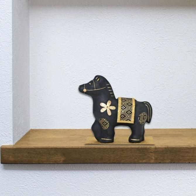 干支置物 正月飾り 午年 2026年 馬 令和8年 黒馬 龍寅堂 陶器 リュウコドウ 迎春