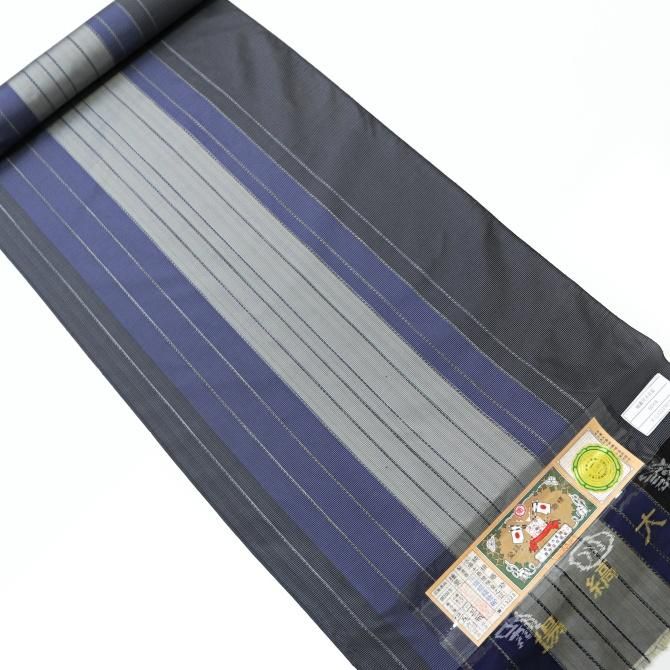 縞大島紬 墨黒 紺 グレー 鹿児島大島 滝縞 絣糸 本場大島紬 正絹 AB反